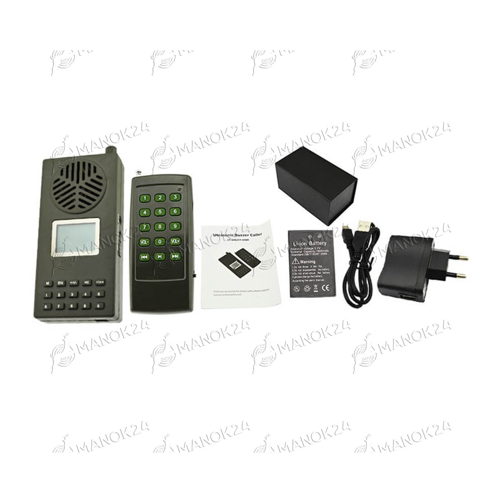 Компактный и мощный электронный манок с дальностью действия на 2-3 километра. Прибор оборудован дисплеем 128х64 точек для отображения текущих настроек и внутренней памятью для хранения 260 звуков. Выходная мощность усилителя составляет 30 Вт, что позволяет подключать внешние динамики. Корпус прибора пыле- влаго- защищенный. В комплекте с манком пульт дистанционного управления с дальностью действия до 120 метров. Встроенный литиевый аккумулятор обеспечивает работу манка в течение 16 часов.
